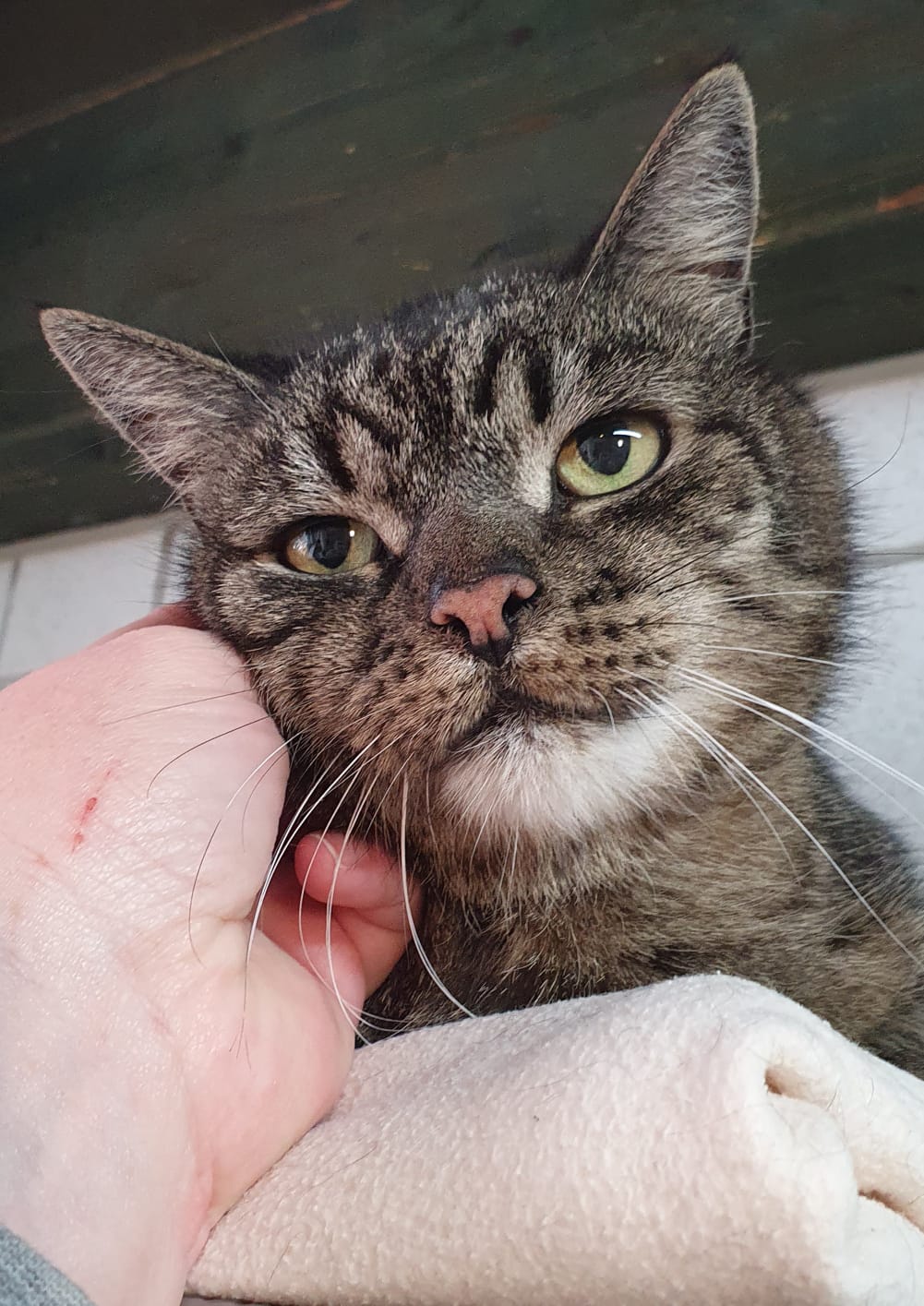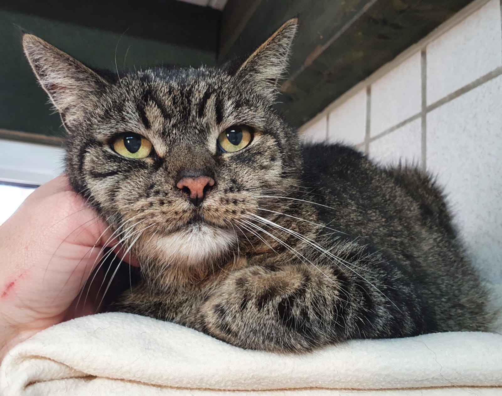 Garfield musste operiert werden. Er hatte einen Knubbel am Hals, der weiter wuchs, leider auch nach innen. Man konnte ihn nicht komplett entfernen, da er sehr nah an Gefäßen saß. Er hat diese OP sehr gut überstanden und scheint sich sehr wohl zu fühlen. Wie lange dies so sein wird, kann leider nicht vorhergesagt werden. Denn niemand kann sagen, ob der Knubbel wieder wächst. Trotzdem wäre es schön, wenn er für die verbleibende Zeit ein liebevolles Zuhause bekäme. Denn er ist schmusig wie immer und genießt die Nähe seines Menschen. Heute wurden die Fäden gezogen und dem Auszug steht nun nichts mehr im Wege.