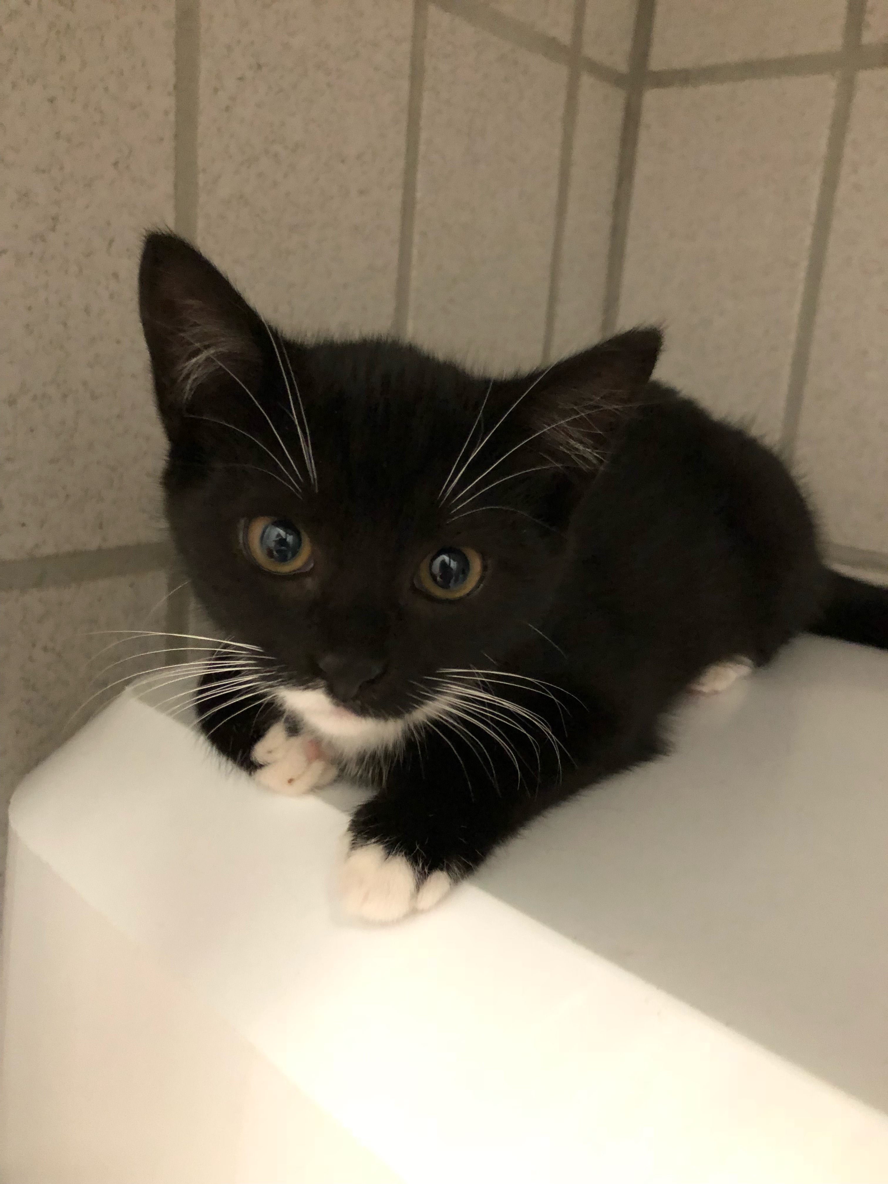 Unsere drei Fundkätzchen sind mittlerweile ins Katzenhaus umgezogen. Hier toben sie in einem eigenen Raum herum und wissen vor lauter Übermut nicht, was sie alles anstellen sollen. Oskar ist schwarz-weiß mit weißem Gesicht, Rosalie hat eine weiße Blesse und Emely hat ein weißes Kinn. Die drei werden entweder zusammen, zu zweit oder, wenn einer übrig bleibt, zu einer ähnlich alten Jungkatze vermittelt. Sie kommen von draußen, von daher kann es gut sein, dass sie auch gerne später nach draußen wollen. Daher wäre eine spätere Möglichkeit zum Freigang von Vorteil.