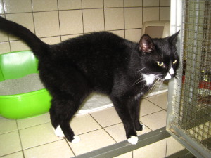Farbe/Felllänge:schwarz mit weißen Pfötchen, Kehle und Bauch