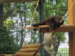 Alpia genießt wie die anderen Katzen im Moment die schönen Sonnenstrahlen. Sie lässt sich auch weiterhin noch nicht anfassen, rennt aber auch nicht mehr sofort weg, wenn man sich gemeinsam mit ihr im Raum oder Freigehege aufhält. Sie scheint ihr Rundherum zu beobachten und es nicht mehr so sehr zu fürchten. Neue Katzenfreunde müssen auf jeden Fall einiges an Geduld und Ruhe mitbringen, vielleicht öffnet sich dann irgendwann des Kätzchen Herz und vertraut sich ihrem Gegenüber an. Alpia ist Freigängerin.