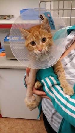 Eine OP war notwendig – alles in allem rund 800.- Euro – sofern keine Komplikationen auftreten. Den Eingriff hat er bestens überstanden, und durfte einen Tag später schon ins Tierheim umziehen. Hier stillt er nun erstmal seinen unendlichen Hunger, und seinen Bedarf nach Zuwendung und Aufmerksamkeit.