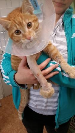 Der aktuellste Fall, ist der kleine, halbwüchsige Kater “Pinocchio”. Er wurde von einem Mitglied des Tierschutzvereins in Vluyn gefunden. Eine Tierpflegerin machte sich gleich auf den Weg um ihn abzuholen, denn schon am Telefon wurde schnell klar, das der abgemagerte Kerl verletzt sein musste. Von seinem Finder aus, wurde gar kein Umweg mehr über das Tierheim gemacht, sondern direkt die Tierklinik in Duisburg-Rheinhausen angesteuert.