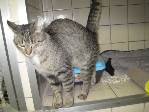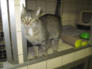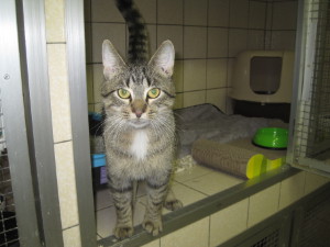 Farbe/Felllänge:grau-getigert, weißer Streifen im vorderen Halsbereich